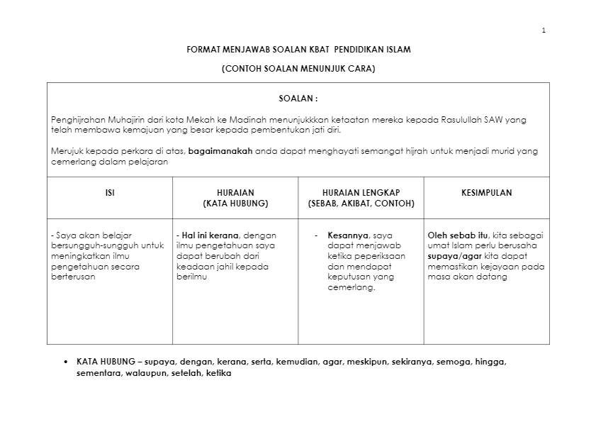 Contoh soalan kbat pendidikan islam tingkatan 2 persoalan u teknik menjawab spm bagi soalan kbkk & kbat pendidikan islam soalan respon terbuka bukan kba. 4 markah isi saya tidak bersetuju. Kemukakan pendapat anda tentang pernyataan di atas beserta alasan. Cara menjawab soalan kbat pendidikan islam pt3; Tengok markah (jika soalan hendak 2 .